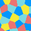 Generates a Voronoi diagram using Poisson-disk sampling for site placement and Delaunay triangulation for cell construction. Each Voronoi region is filled with a color chosen from a user-defined palette, ensuring adjacent regions receive different colors.