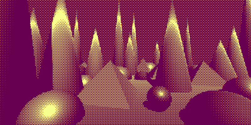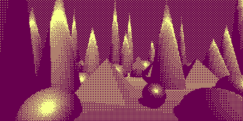 - In a difficult-to-understand way, the dithering pattern used affects the emotional impact of the scene, and it is worth spending time to explore it. Presumably different patterns have different connotations.